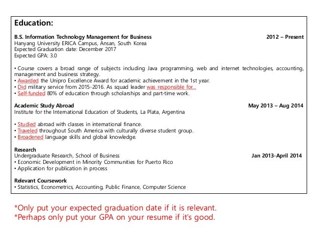 Projected Graduation Date On Resume. When you have very little job experience or are still taking classes, placing an expected graduation date lets. Many college students graduate with little experience. In the thing that you glance around, you'll notice that everything is marked. From a little container to a big office perform area, all single matter will undoubtedly have at any rate one mark. Naming things is valuable, simple and functional, and the applications are basically interminable. You can find a broad assortment of names accessible available, in various shapes and sizes, styles, plans, hues, materials, template, etc.
